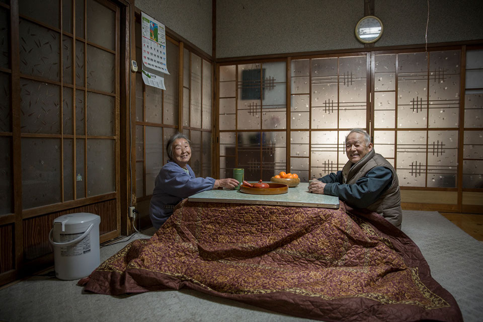 ほかほかと温かい炭火の掘り炬燵にあたり、お茶をいただきながら昔の暮らしぶりを伺った。「ちょっと失礼」と、布団をめくって炬燵の炭火を覗き込むと、恒秀さんの足下で飼い猫のユズが、突然訪問した私に怯えた目を向けていた。