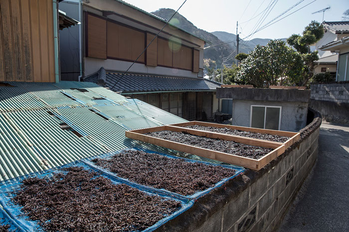 1年に2回だけ行われるヒジキの刈り取りがあった数日後、集落のあちこちでヒジキが干してあった