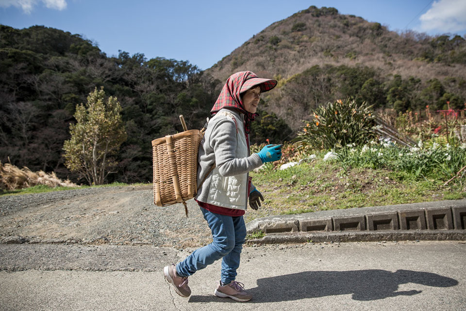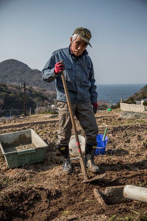 |草刈りをしていた靖さんも中学を卒業してから1年間は、両親と一緒に農業をしたが、どうしても船に乗りたくて、40年間ほど船の仕事をしていたという。冬が逆戻りしたような冷たい西風が吹く朝、集落の一番上の靖さん宅を訪ねると、妻のはるみさん(74)が、靖さんが船に乗ることになった経緯を話してくれた。
