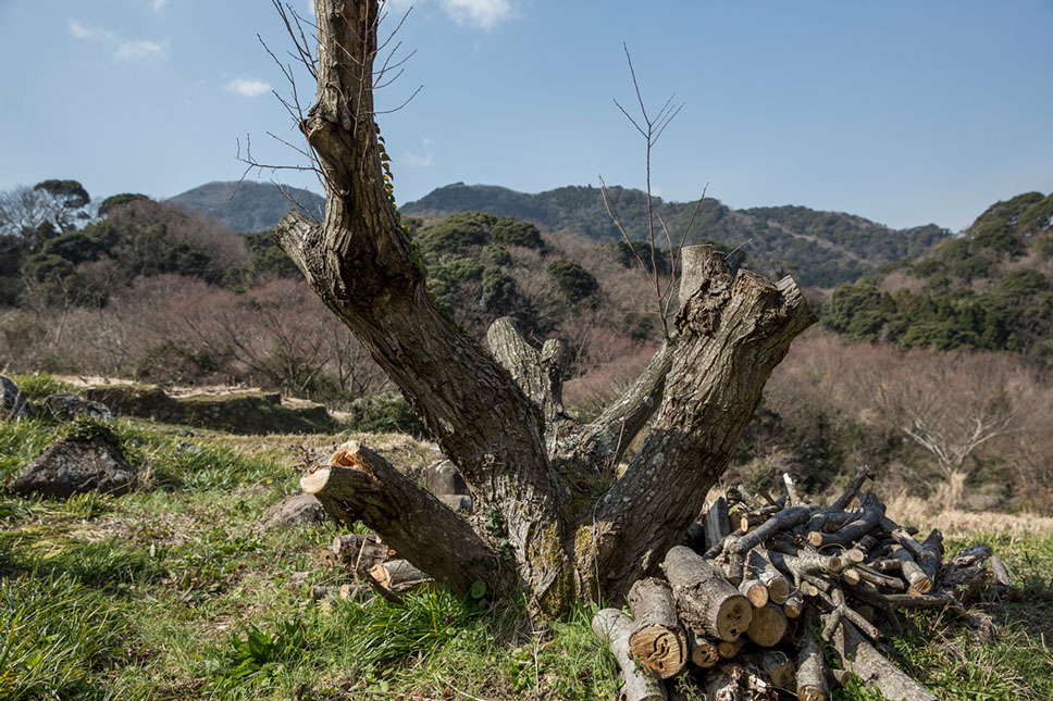 「最期には死に花を咲かせるよ。去年は、すごい沢山実を付けたっけ」。はるみさんが棚田に植えた栗の木が枯れてしまった