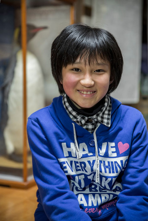 |外で遊ぶのは、あまりしません。夏休みに海で泳ぐのも、お父さんと一緒の時だけで、1週間に1回くらいかな。バレーボールが好きなんで、お姉ちゃんと一緒に「ハイキュー!!」ってマンガの本を集めています。持っているのは、15冊くらいあるかな。宿題が早い時間に終わっちゃって、けっこう時間がある日とか、休みの日とかに読みます。「ハイキュー!!」を買うお小遣いは、学校のテストで100点とったら100円もらえますので、それで買います。でも、1年間で100点とれるのはけっこう少ないです。あと、たまにお父さんと買い物に行った時に、微妙な小銭というか、そういうのをちょこちょこもらっています。お年玉は貯金します。全然使わない。お年玉は、小っちゃい時からもらっていたけど、いくら貯まっているか分かりません。貯めているお年玉を、いつ使うかは決めてないけど、ちょっと必要な時とかに(貯金を)降ろしてもらったりしようかなって思っています。でも、1度もそうしたことはないし、まだ、大丈夫。