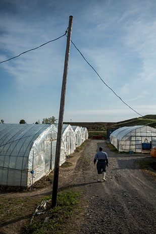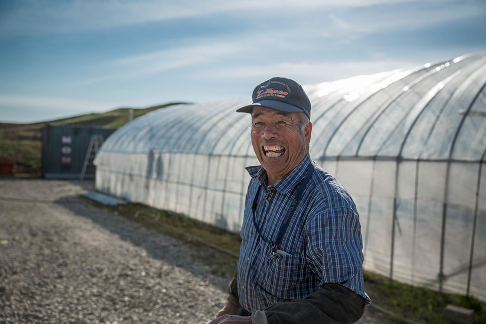 「農家やるなら北海道」と胸を張る鈴木栄一さんが、育苗しているビニールハウスを案内してくれた