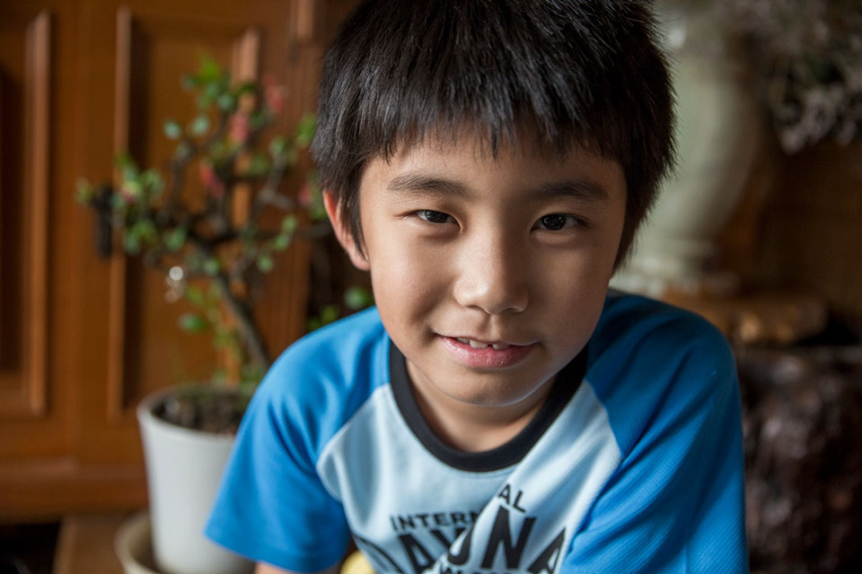 自宅の玄関で、お手伝いのことや学校の様子を聞かせてくれた相馬蒼生くん