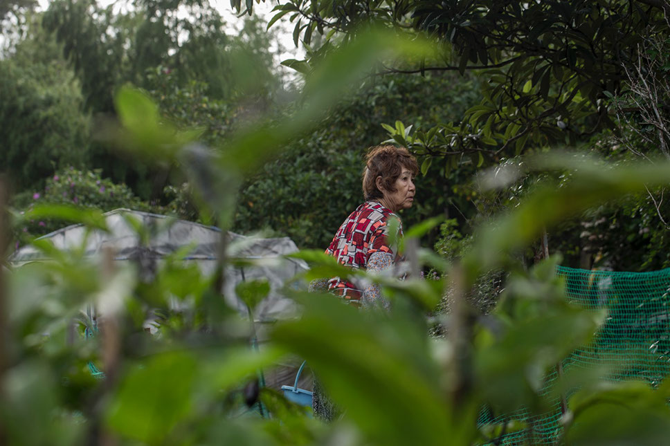 |台風11号は日本海へ抜けたとニュースが伝える頃になると、厚い雲の切れ間から少しだけ青空がのぞくようになった。そんな天候の変化に合わせて、それまで人影のなかった畑に働く人の姿が現れる。畑に出る機会を待ちかねていたのだ。