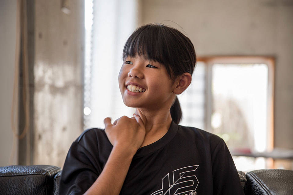 |いま楽しく頑張っているのは、読谷アスリートクラブの練習。毎週、月曜と木曜は学校が終わってからで、土曜日は午前中。脚の筋肉を伸ばしたり、体をほぐしたりする基本の動きを6、7分ぐらいやって、そこから本格的な練習に入っていきます。100メートルは14秒7です。お父さんは走るのが速いけど、お母さんは……かな。5年生の時だけど、沖縄市であった県大会のリレーで2位に入った時の銀メダルは、箱に入れて大切にしています。たまに見ると、また頑張ろうって気持ちになります。監督が中学生になっても教えてくれるって言ってるので、中学生になっても陸上をやってると思います。