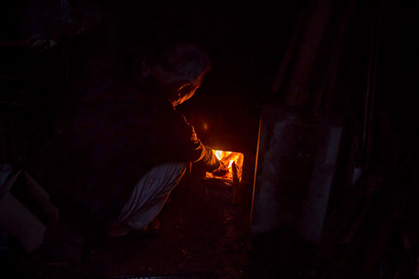 日が暮れて茂樹さんが山の木を薪に風呂を焚く