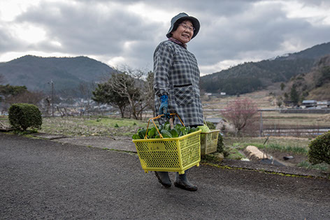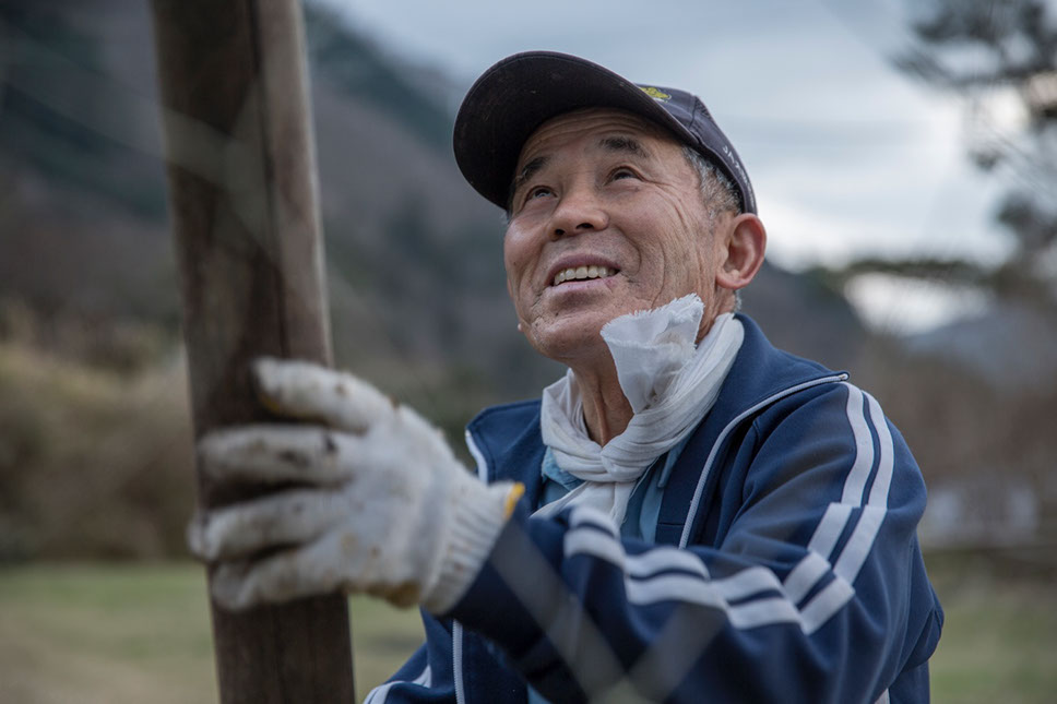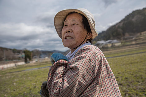 |「元気ちゅうことないけど、しょうことなくせなあかんから。じっとテレビ見とったら楽やけど……。腰が痛いわ。自分がやれるだけやって、でけんようになったら止めたらええのやから。(遠くの県道を)通りよる車を見て、世間を楽しみよるんよ」