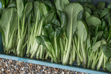 |「若い人はほとんどお勤めでね。定年になられて元気な方が大きく野菜作りされておられますけどね。小松菜は200グラムで100円です。お金のことより元気で仕事できることに感謝してるぐらいですわ。去年12月に蒔いた種ですけど、冬越しで。10袋出すと売れるのに3日ぐらい掛かりますからね。他の人のもありますから」