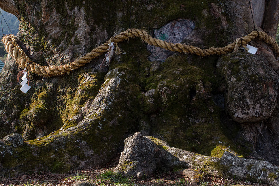 |前には、この樹を、5軒ほどの人が守ってはったんですよ。嫁に来たときに、伊勢講いうて、毎年ここへ参って、それから家参りやから、家でご飯こしらえたり、色んなんしてたんですよ。樹の注連縄も5人で、あんだけの注連縄を、毎年。主人が亡くなった17年前まではね、12月になったらね、主人やらがしてましたわ。他の人が皆、主人より早よに死なはったからね。主人ひとりで掃除しに来たりね。どこへ行きはったんやろ思うたら、また、蟻無(ありなし)いうぐらいね。ほっとかれへん性格やったんやね。蟻無いうのは、あん(柵)中だけやと思うんやけど、神社の前だけ。何で、ここんとこを蟻無、言うようになったんか知らんけど、蟻が来んようにとか言うて、砂を持って帰って、家の縁に置いといたら蟻が来ないとかいうので、それで蟻無や言わはるけどね。