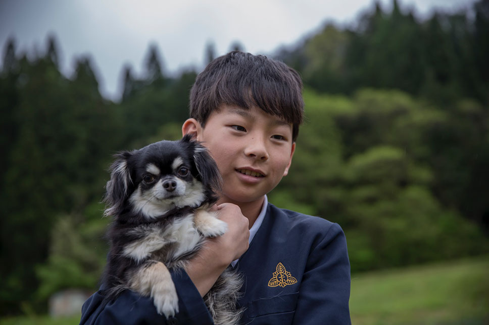 |ようやく写真撮影に応じてくれた充気郎くん。大切なものとして一番に名前の挙がった愛犬「ここあ」を抱いてカメラの前に立ってくれた。しかし、視線をカメラと合わせてくれない。チラッとカメラを見てくれる時は、「ここあ」の体で顔を半分隠している。この日の夜、上齋原小学校の体育館でフットサルの練習があると聞いて撮影に行ったが、休憩時間に充気郎くんにレンズを向けると、「今は駄目です」と顔を隠してしまった。さて、撮らせてもらった写真が、とっておきの1枚と充気郎くんに認めてもらえるかどうか、ちょっと心配。目の前の課題に一所懸命に挑もうとする純粋でナイーブな充気郎くん。忘れていた大切なものを教えてもらったようだ。