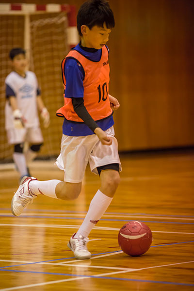 上齋原小学校の体育館で行われたフットサルの練習で