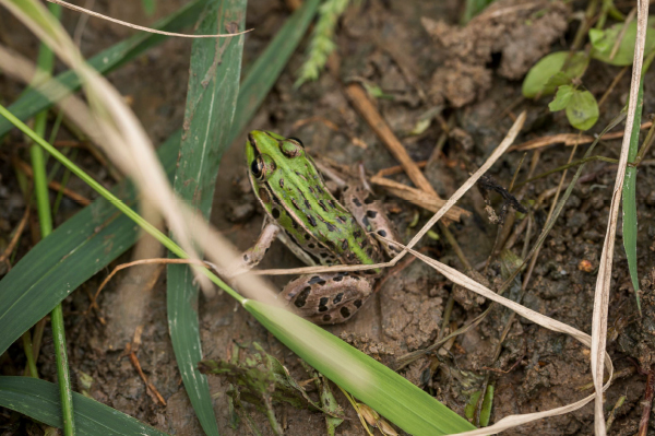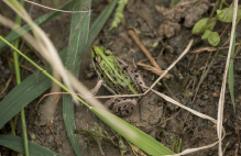 生き物と共生する農法を目指す稔さんが耕作している棚田の下法(したのり)には、30センチ幅で30センチの深さの「江(え)」と呼ばれる水田内水路が設けてある。「江」を設けることでゲンゴロウやタニシ、ヤモリ、カワニナ、タガメ、トノサマガエル、それに北陸サンショウウオまでが生息できる共生の場となっているのだ。