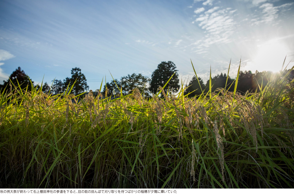 リズム良く稲束を投げ上げていた房子さんが、すっと手を下に伸ばし落ちていた一本の稲穂を拾うと、いま投げようとしている稲束に差し込んだ。一粒の米も無駄にしない房子さんの百姓魂を見た思いだ。