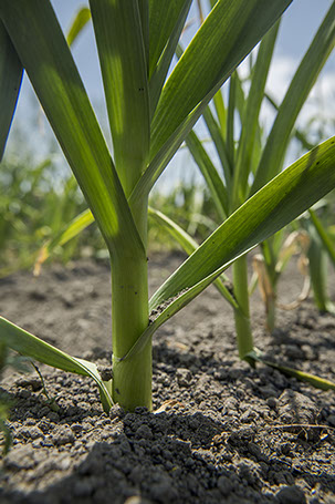 修一さんの畑のニンニクの茎