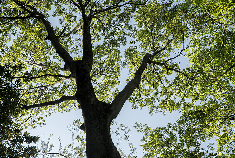 緑陰を作る多摩川土手の新緑が輝く