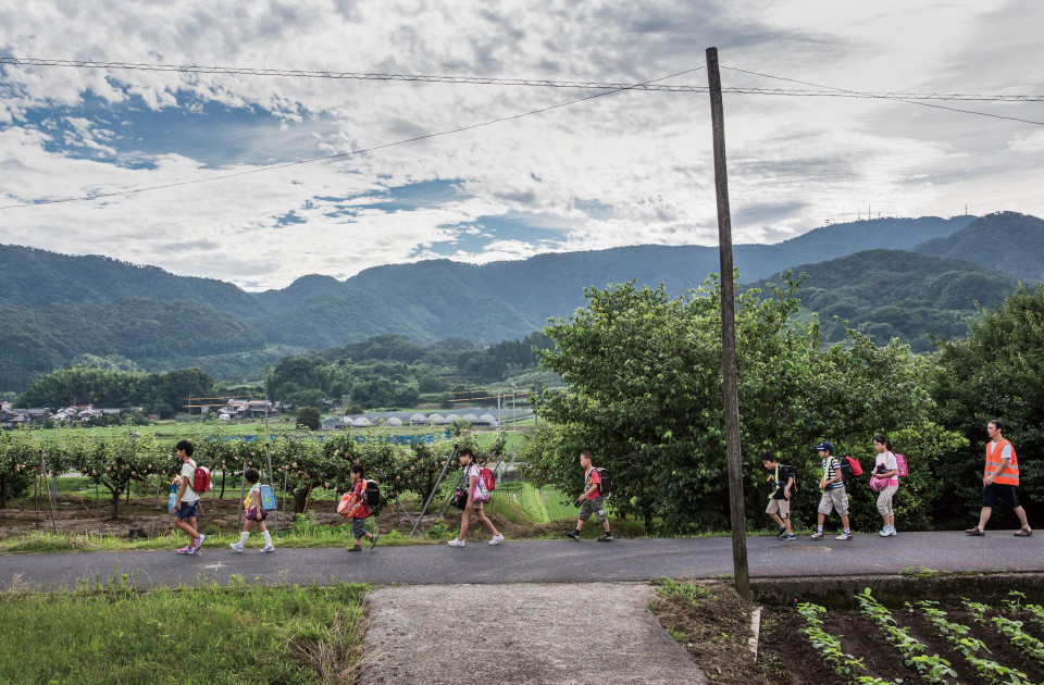 別所から本郷小学校へ通う小学生8人は、朝7時20分に大日如来様を祀るお堂の前を出発して集団登校する