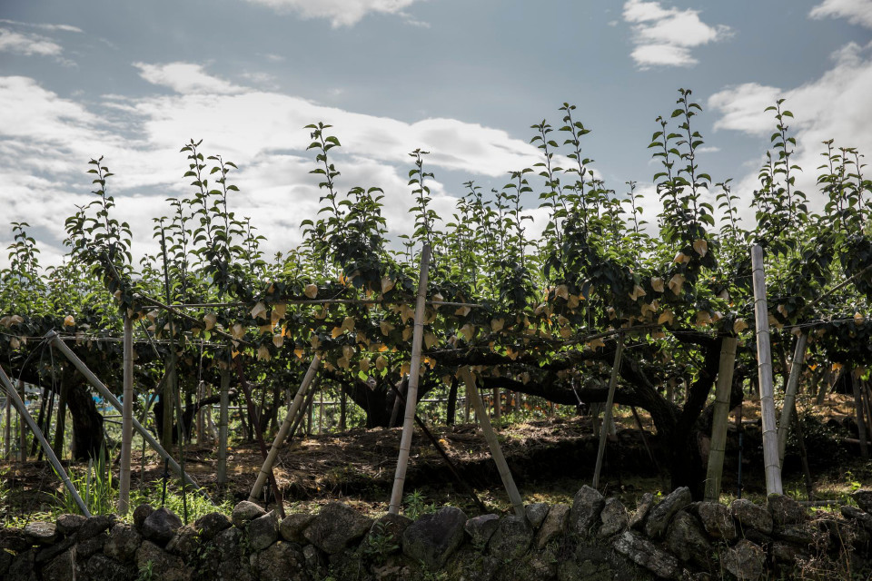 梨の袋を掛けるのも一つ一つの実に一枚ずつ掛けていくしか方法はないのだ。畑の草を抜くのも同じ、腰を屈め、一本一本を手に持って抜いていかなければ、畑の草は無くならない。気の遠くなるような作業を黙々とこなしていく農業の時間に圧倒された。現代社会が目指す合理的な時間とは明らかに異なる誠実と呼ぶような時間が別所には流れている。