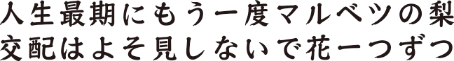 「交配させたら色でも着けばいいけど、色も着かんですしね。どこまで授粉しとったかなちゅうことになるんですよ。よそ見一つできない気の遠くなるような仕事です。梨つくりは、交配が一番大事ですわ」