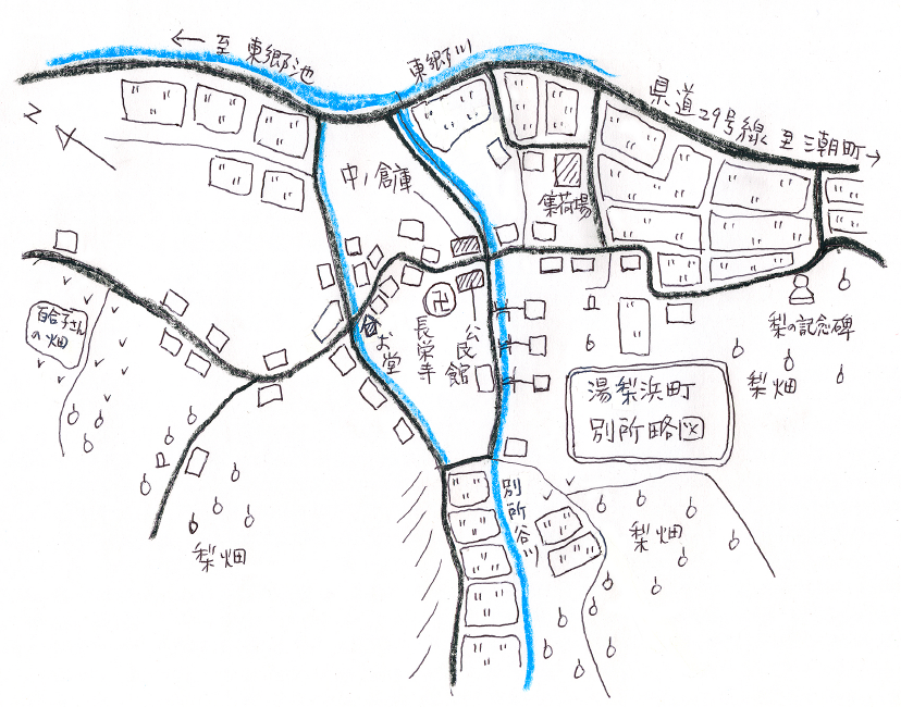 別所を南北に抜ける小径を歩くと、集落南の外れにある梨畑に、梨の形をした石彫が乗った石碑が建ち、「ひと粒の種がみのりて世界まで行きわたりたる二十世紀なし 梨ノ先駆者 故伊藤馬蔵ノ碑」と刻まれている。梨畑の所有者だと聞いて、新しい長靴で総事に参加していた伊藤義英さんを訪ねた。