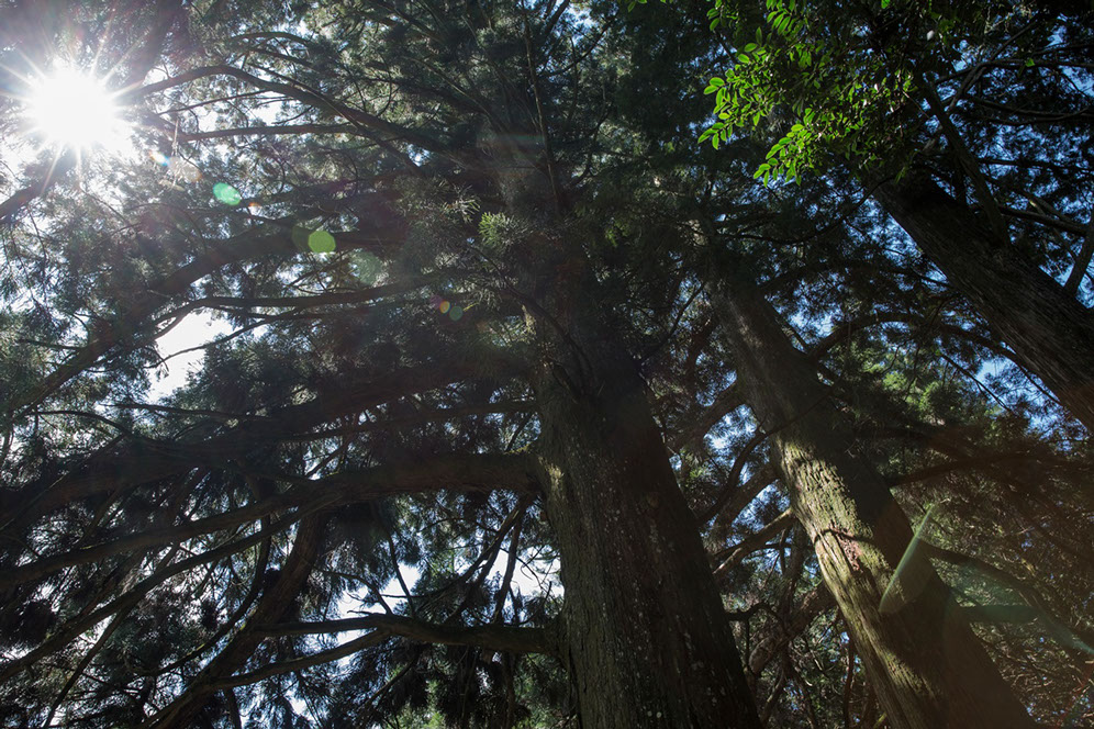 坂折集落の氏神である下権現神社境内の杉の巨木