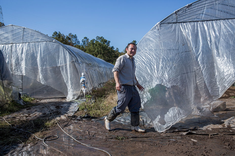 1年目は「トマトが割れて割れて」出荷できるようなトマトはできなかった。「1年目は、惨敗やったですね。トマトが主体で、ホウレン草と白ネギをやっちょります。白ネギは穫り遅れて、今もまだ残っちょります。今年、白ネギは単価が良くないみたいで、やべえなあ。親もトマトしよると、親がうるさいけん、白ネギを始めたんやけど、値が下がりよるけん、なかなか本気にはなれんですわ。信用でけるのは家族かも知れんけど、壁になるのも家族かなと思いますね。トマトの玉がバーッとできた時は、真剣うれしいですね」