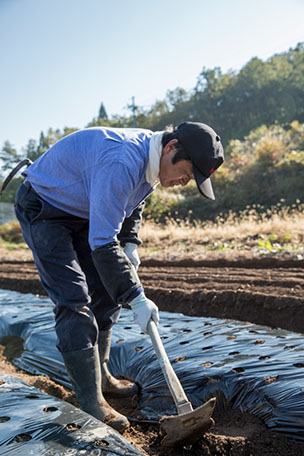 「タマネギの苗が来るき、その準備をしよっとです。4月に父が亡くなって、田畑の管理がですね。自分は勤めに出とったけど、いつかせないかんち思ちょったから、勤めは辞めてですね。栗原は、誰もが専業でやっちょるから、他には頼みきらんとですもんね。前から少しはしよったですけん、何ぼか、きつさは分かります。細々とでも生きていける百姓じゃないと駄目ですね。百姓が潰れたら国が潰れますけんね。なるべく肥料を使わないで、畑の力をどうやって引き出すかという実験ばっかりやっちょっとです。自分たちには、土の言い分は判らんですよね。その辺を、どう推し量ったら良いか考えてるんですけどね。(作物が)できたら、ありがとうちゅ(言)うて、感謝して食ぶるしかないですね」