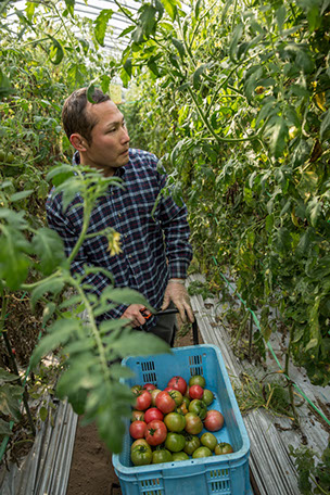 「夏場に来て欲しかったなあ。良いトマトが無えけんね。(収穫するのは)良くて、あと5日かな。来週は、天気が悪そうだけん、霜は大丈夫じゃけど、逆に温度が上がらんき、赤くなるかが問題じゃけん」