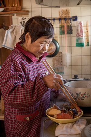 出来上がる煮染めを撮影するために、座敷で準備をしていると、ナナヱさんが私を呼びに来た。